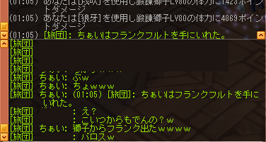 帰宅が遅くて、昨晩は深夜にインしたのですが、流派員が珍しく15レベル前後で旅団狩りしていました。サブで乱入してサブの楽師が16になったです。